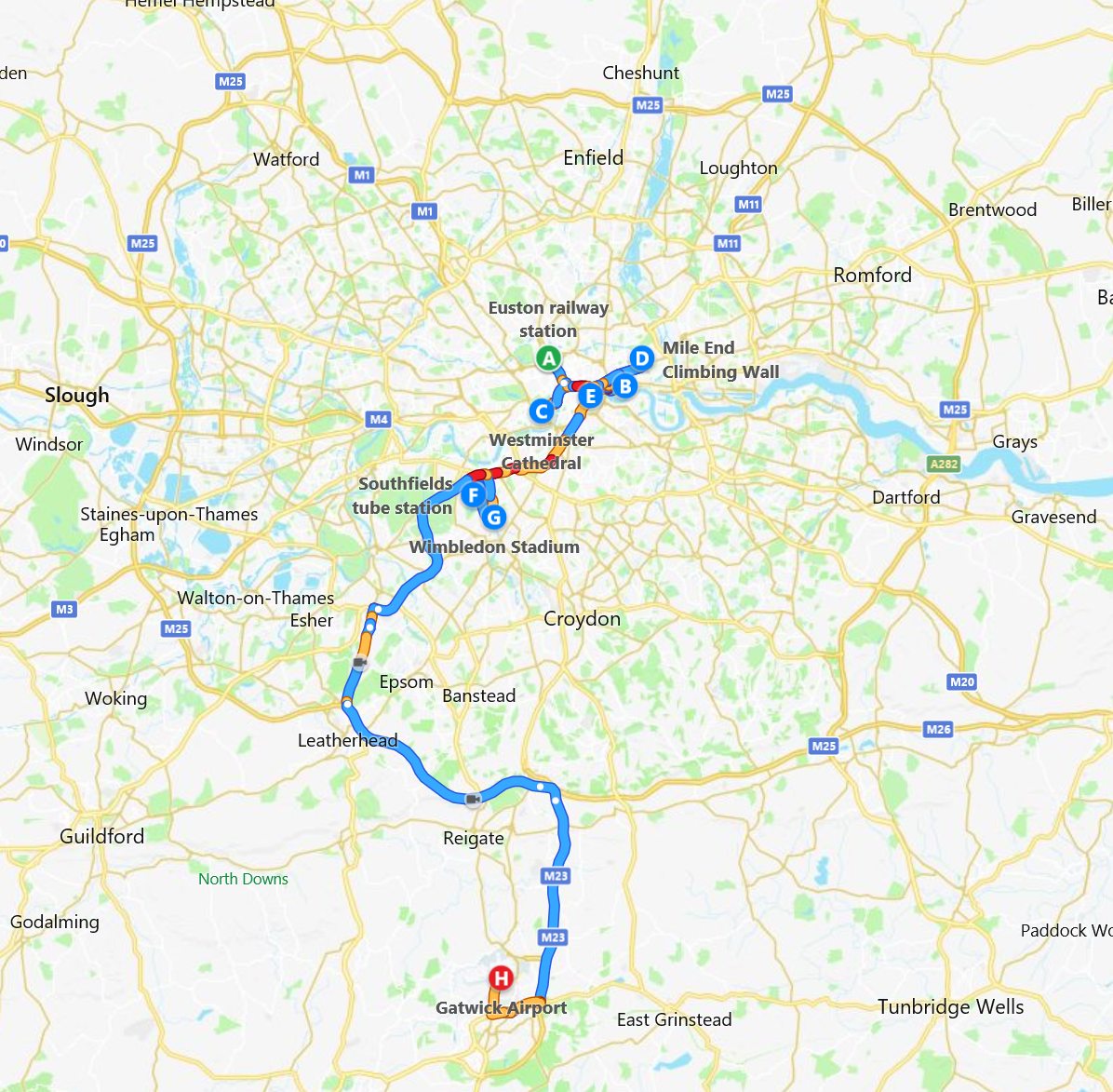 Eventually we managed to get to the gym and tried to park the bikes. You just reengage the lock, and the bike finishes your ride – or so we thought. Apparently, we’d ridden into the no parking zone and Uber was trying to charge us 10 pounds each to park our bikes there. This whole adventure was supposed to be cost saving so we got back on and biked back towards the city. If riding by a river was scary, riding along ongoing traffic was horrifying – especially the double decker buses! Eventually we made it to a parking zone and had to walk 20 minutes to get back to the gym.