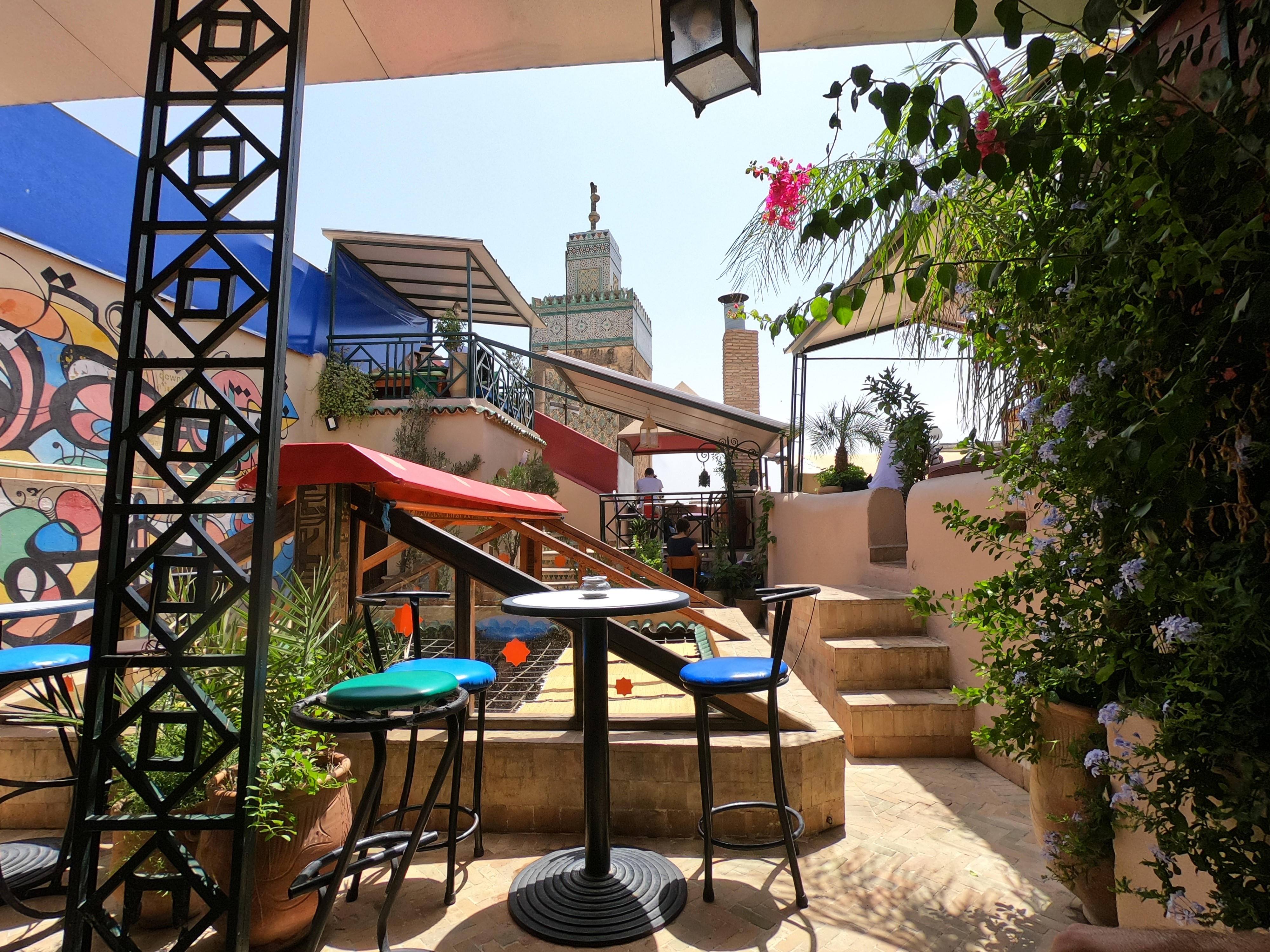 We decided to have a certified guide take us on a half-day tour of the city and to get a hammam and massage tomorrow morning, supposedly with a discount. We were also talked into having dinner at the hotel that night, and they would teach us how to cook it. At this point it was around 9:30 and our tour guide was scheduled to come at 11 am. We spent the next hour getting cash from the ATM machine down the road, avoiding bicycles, cars, pedestrians, and motorbikes, and lounging on the rooftop terrace as the day began to warm.