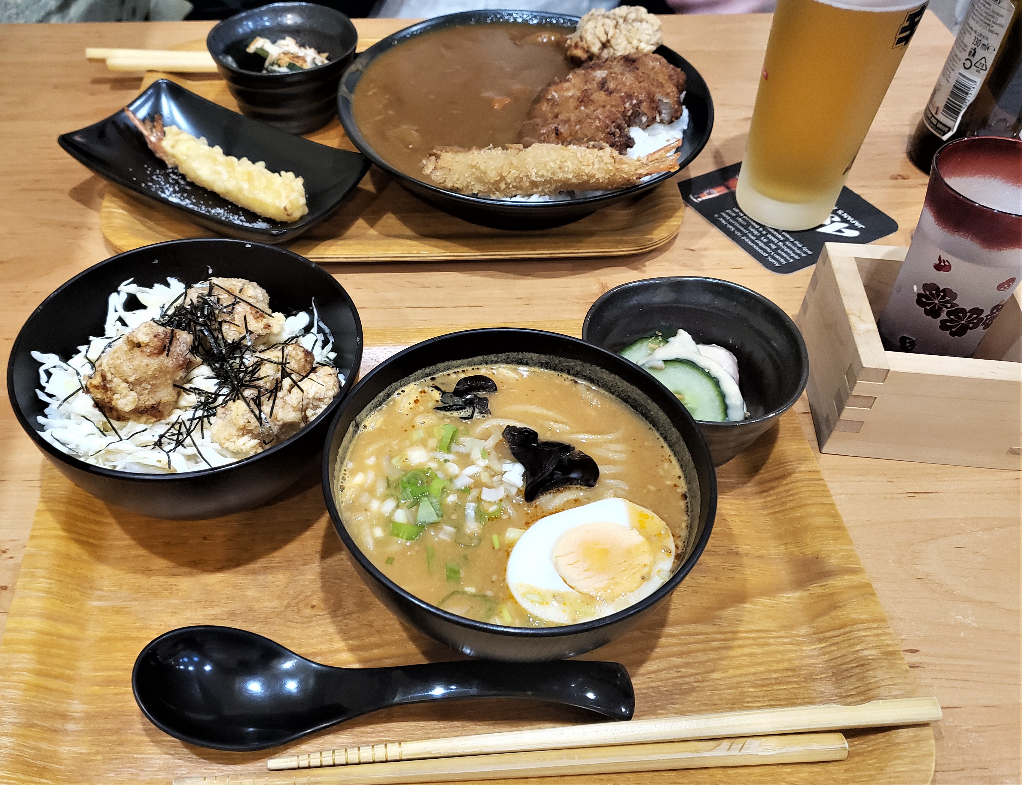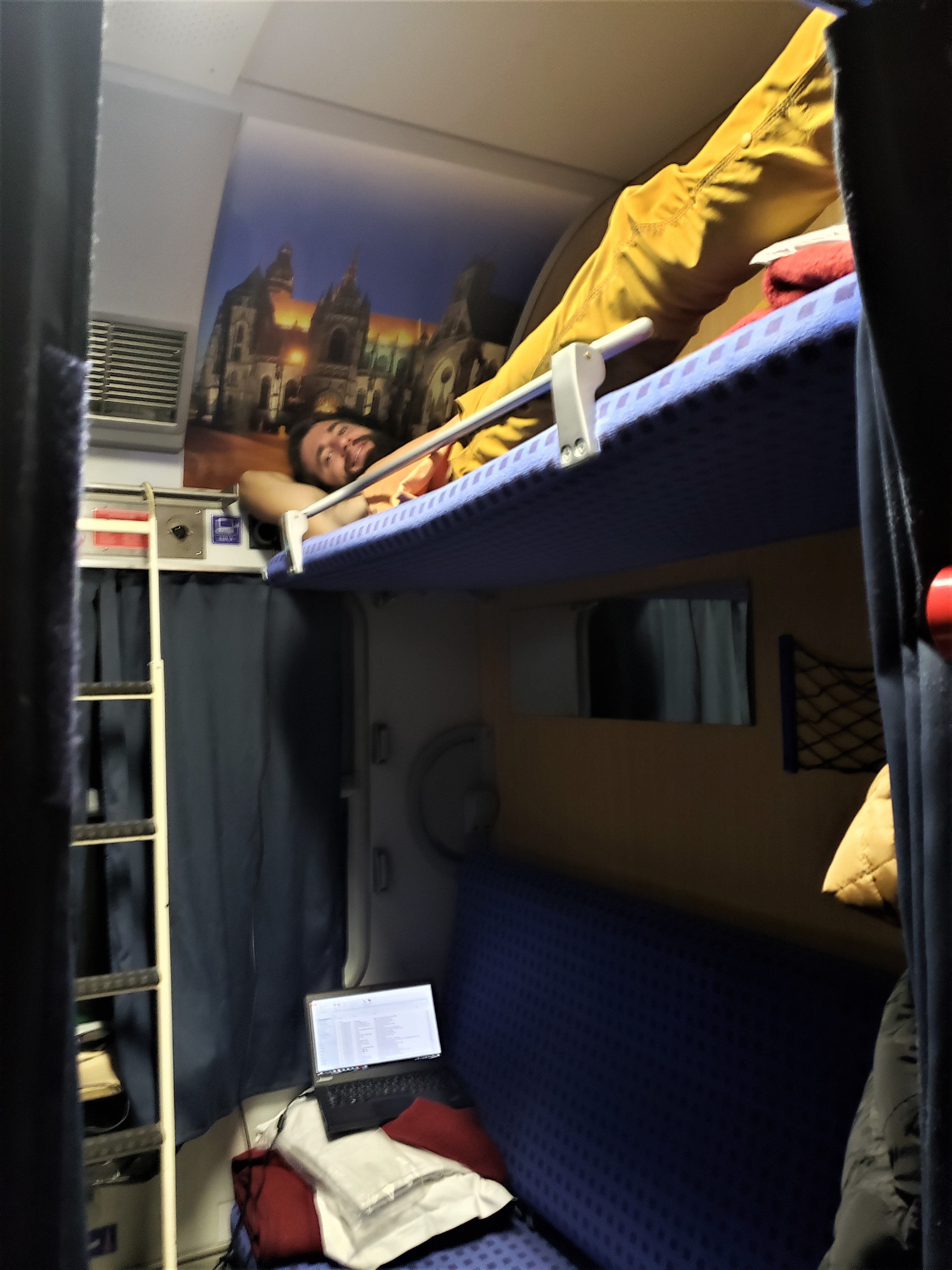 We next took another train back to the rock climbing gym we went to a week before, where Ryan had forgotten his TAMU Nalgene bottle. We’ve been really lucky (knock on wood) not losing things and then being able to recover his water bottle. We had a long subway back up to the lockers where we collected our bags and picked up some Asian food for the train. Ryan got basil beef and rice while Elizabeth got chicken Pad Thai. The street with the bag lockers had about 10 Asian restaurants to choose from. Finally, we made it to the station and on the train.