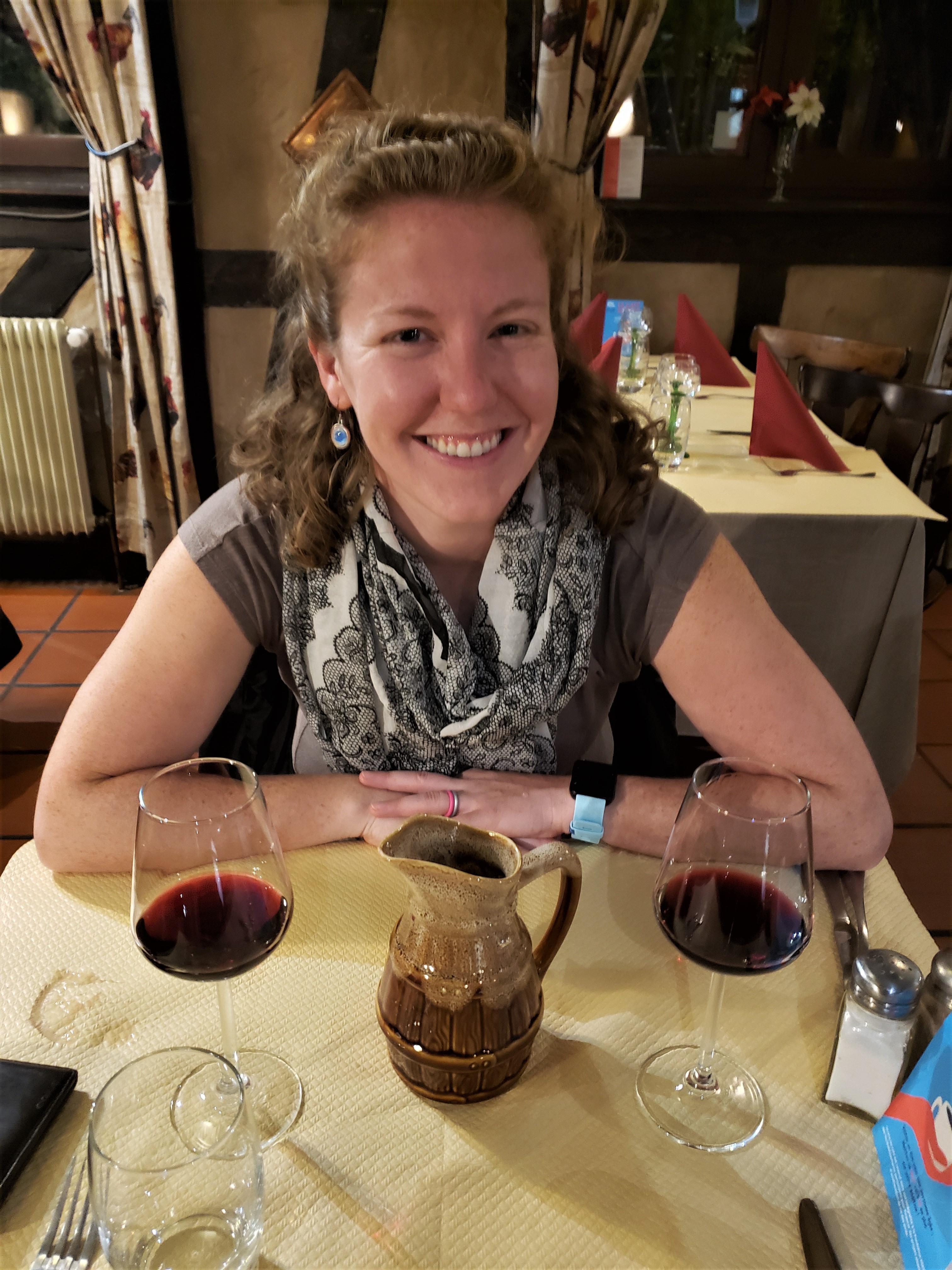 We ate lunch at a hotel restaurant called La Garde Manager which Ryan thought was overrated, but Elizabeth loved. We shared onion soup (funny they don’t call it French onion soup), fries, and fish and mashed potatoes covered in chorizo. The onion soup was the best we’d ever had with French bread and melty Parmesan cheese. We wandered around town checking out the water wheel and the cathedral.