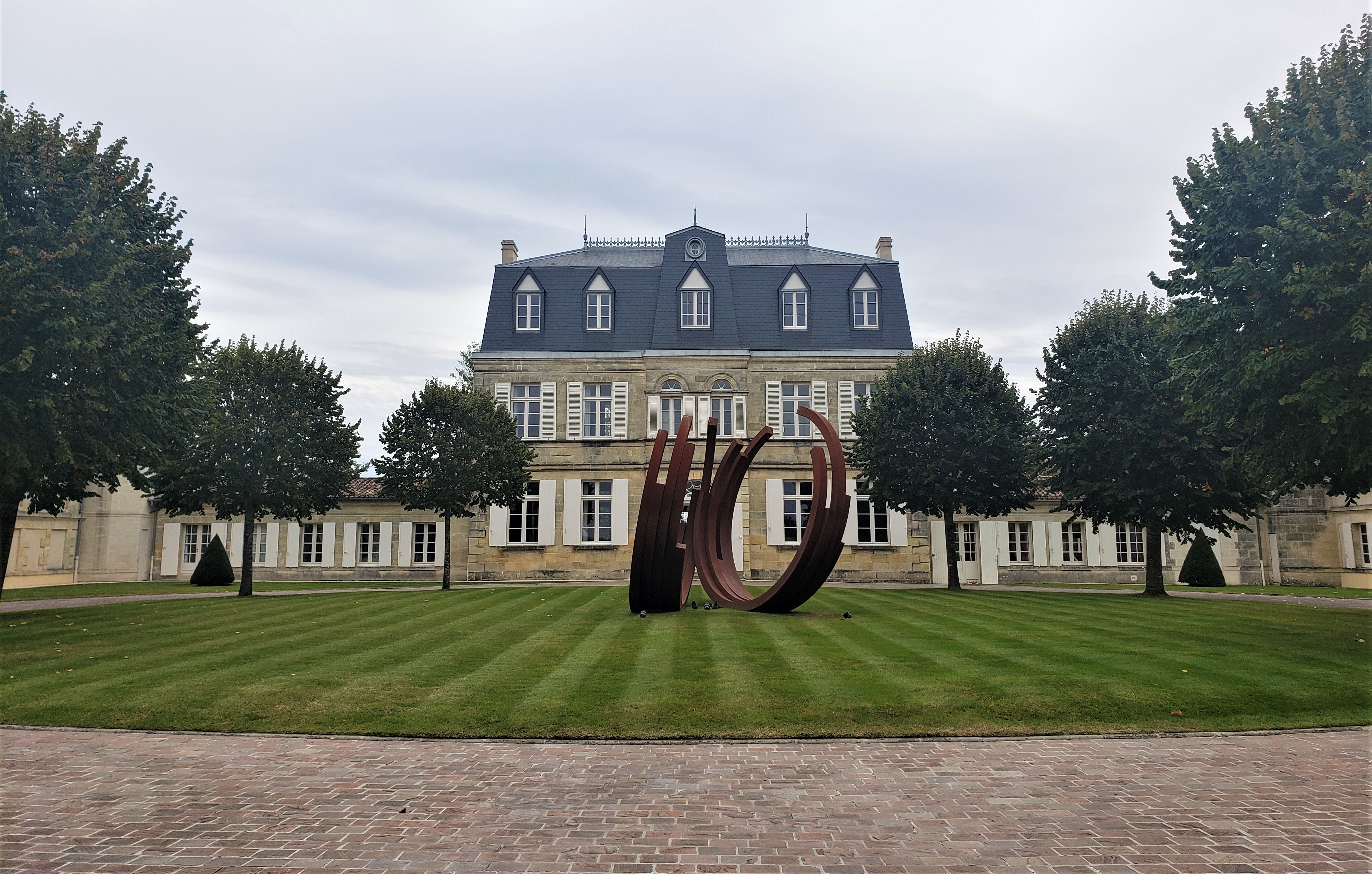 We packed into the rental car and left the house at 8:15 to find a pastry shop before going on our first winery visit. It’s crazy how good the pastries are here, one of our favorites is a raisin and custard pinwheel. As we were making our way to the winery, passing through typical city streets and commercial buildings, the vineyards snuck up on us and suddenly we were surrounded by gentle hills and rows of grapes. Our tour began at 9 and we watched a video about the winery and its history, then got to see the operation and grounds. We are visiting Bordeaux at an interesting time of the year, during what is known as ‘crush’. It’s when the wineries are finishing up harvesting and begin to actually make and bottle the wine. During the tour we were able to walk through the fermentation room and see the large vats used for the production of wine. Next, we visited their on-site cooper, or barrel maker, and were able to watch him work on a couple of barrels, all out of French oak. We were told he makes 5 a day. Most wineries use the same barrels for 3-5 years and 30% new barrels each year.