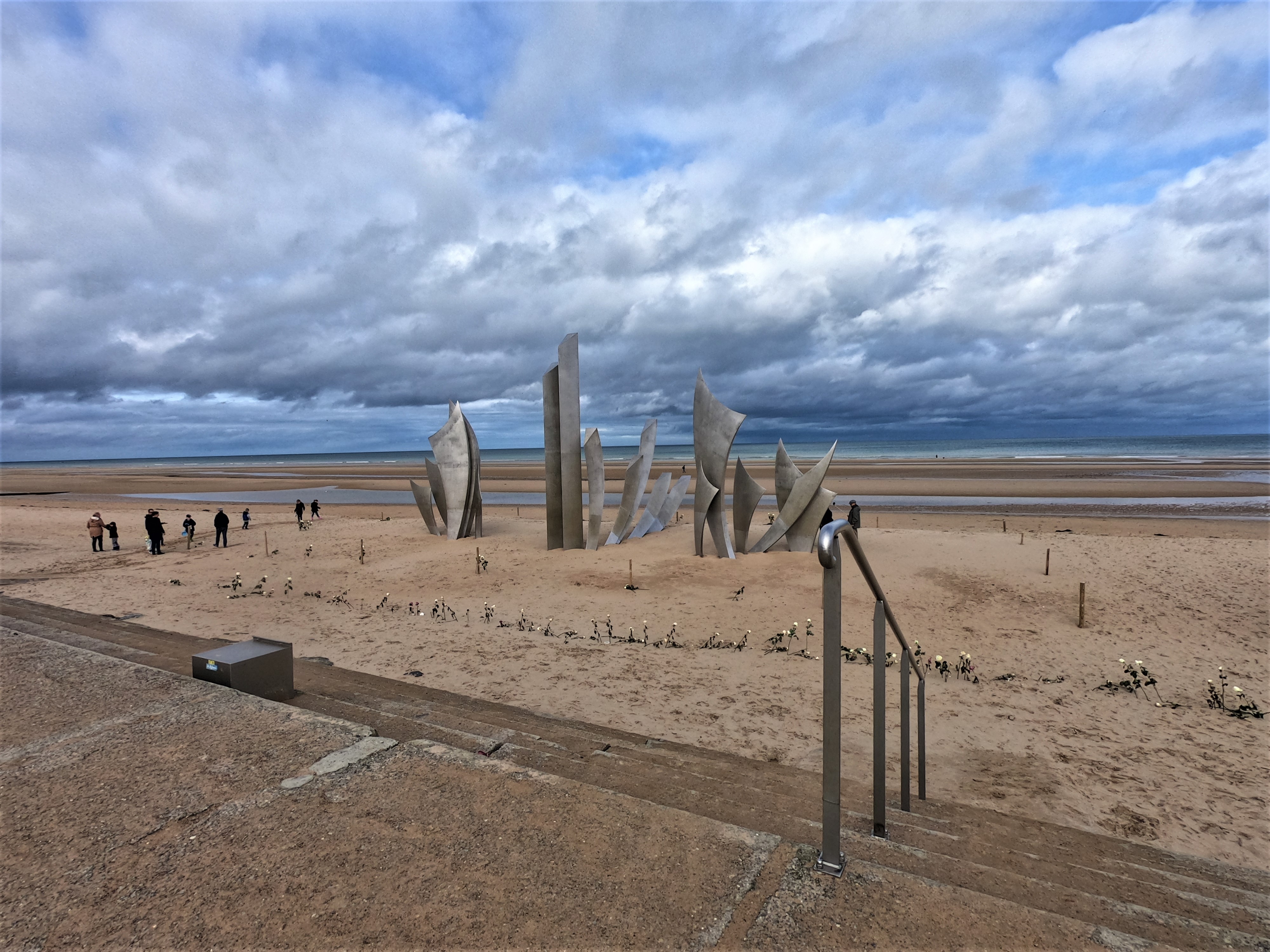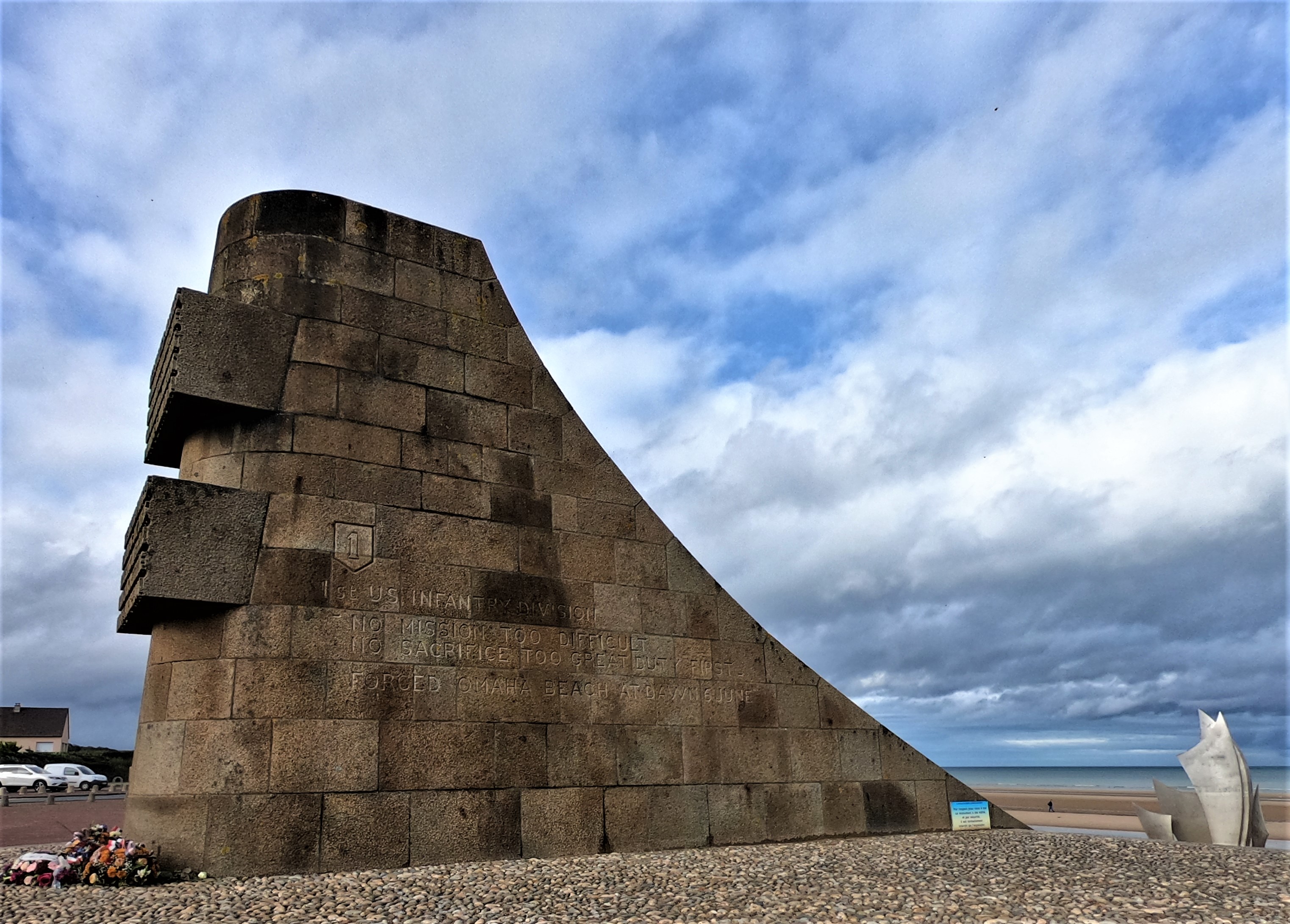 Next, we drove to Omaha Beach. We’d had good luck arriving in Bayeux before the crowds, and had a similar experience at the beach. They constructed a large memorial that extends into the sand. Ryan yelled at some people who crossed the barriers of the memorials to pose for pictures; some tourists are the worst. We walked along the beach and looked at the cliffs and tried to imagine the horrors the American soldiers saw that day. We could look to the west and see Utah beach, the other American landing site. As a few tour buses pulled in we headed out towards the Overlord Museum.