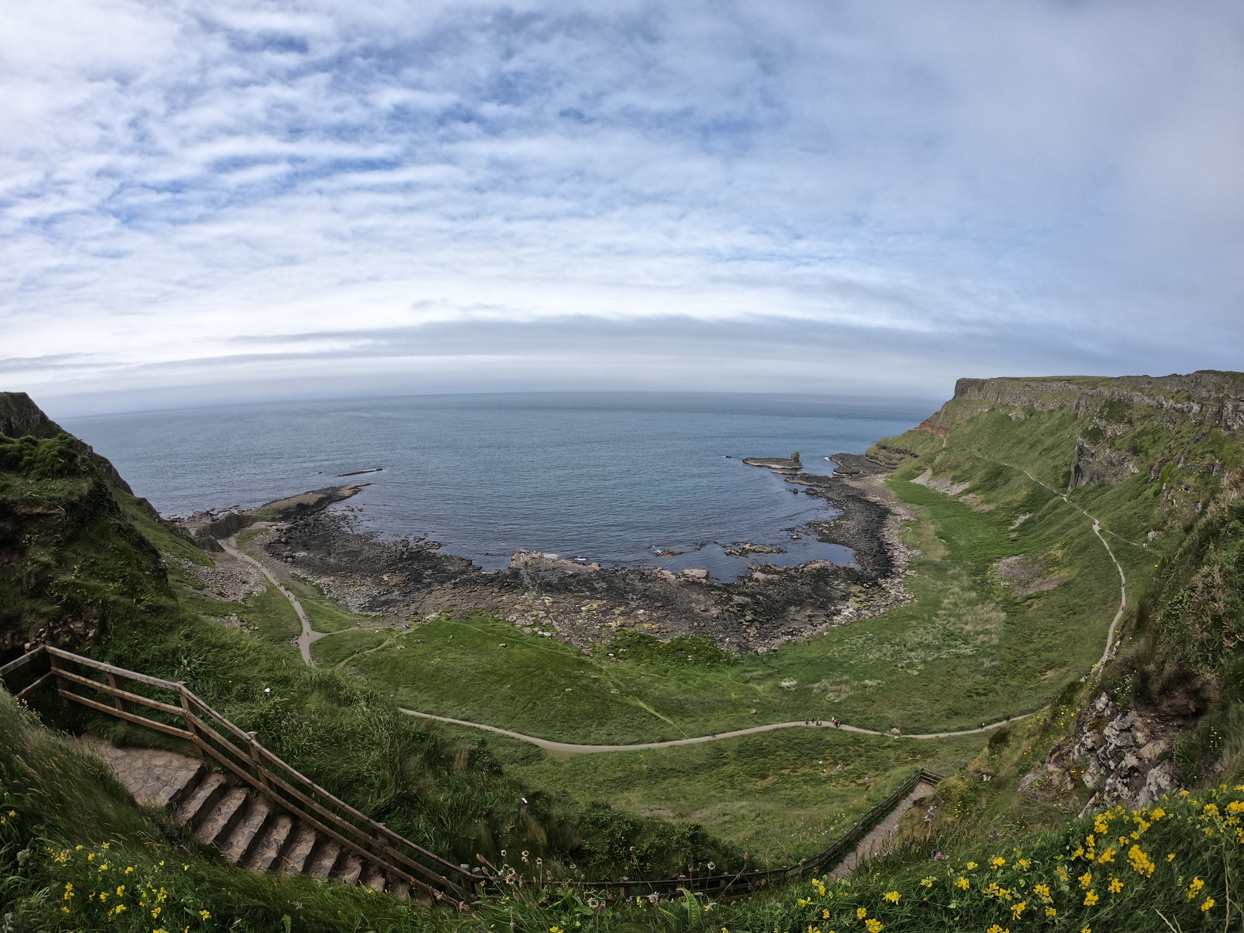 Whichever is true, the area is absolutely stunning and a marvel to behold. We hiked up and around a few of the cliffs and enjoyed the great views. The edge to the sea is very steep and a large staircase (the shepherds’ staircase) led us out of the shore. Once we were at the top, a sign read: imagine carrying sheep up this steep hill before the stairs were built. Hard pass.